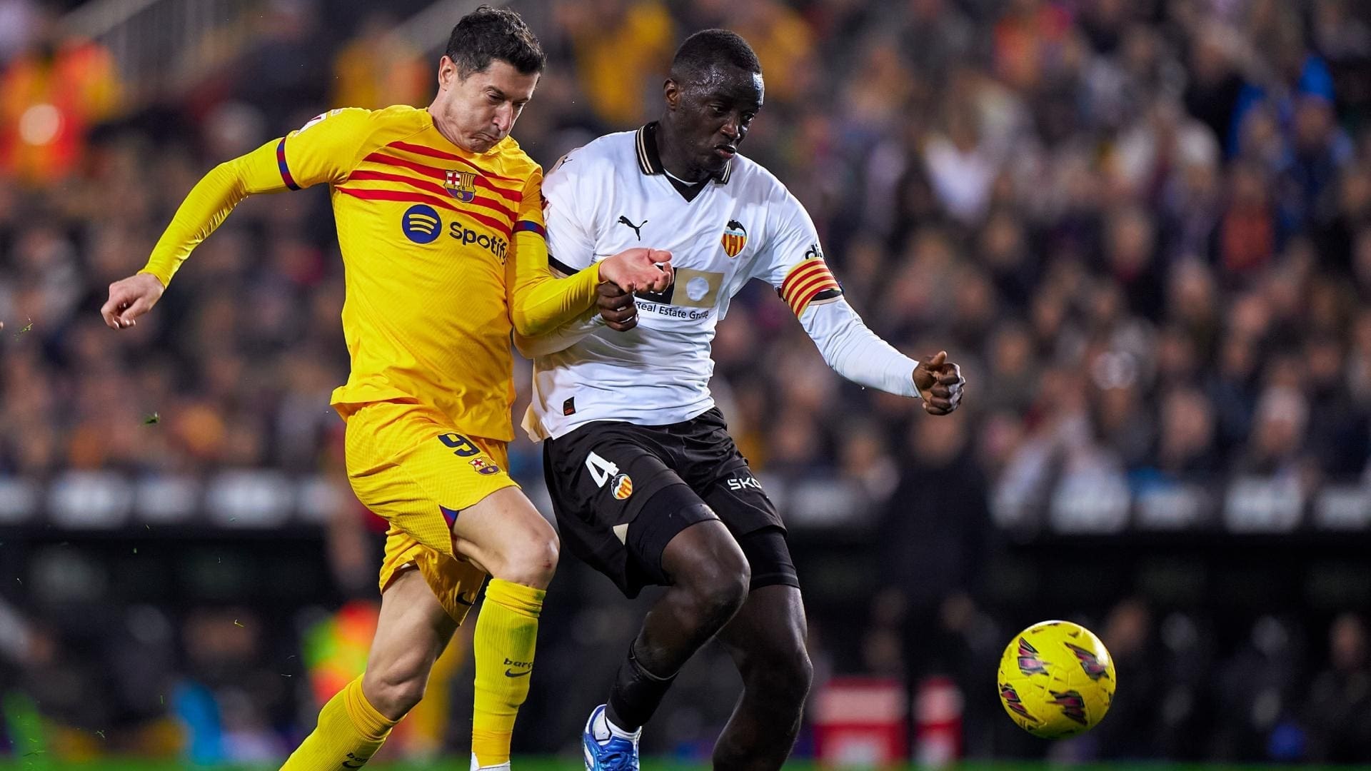 دی‌شب هفته‌ی هفدهم لالیگای اسپانیا با چند دیدار برگزار شد که در مهم‌ترین دیدار ساعت ۱۲:۳۰ به‌وقت کابل بارسلونا در ورزش‌گاهِ مستایا مهمان والنسیا بود. در چهل‌وپنج دقیقه‌ی نیمه‌ی نخست دو تیم حمله‌های زیادی را به‌روی دروازه‌های یکی‌دگر طرح‌ریزی کردند؛ ولی عمل‌کرد خوبِ سنگربانان و مدافعان، اجازه‌ی بازشدن دروازه‌‌‌ها را به مهاجمان دو تیم نمی‌دادند. درنهایت این نیمه بدون ردشدن گولِ از دروازه‌ها با نتیجه‌ی بدون گول صفر بر صفر به‌پایان رسید.