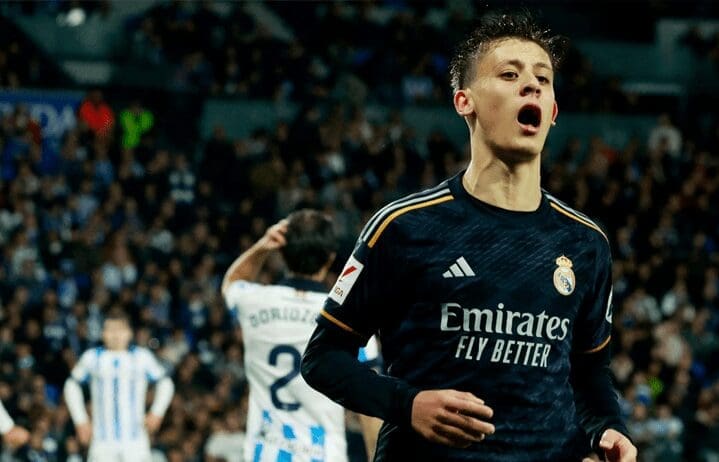 دی‌شب هفته‌ی سی‌وسوم لالیگا اسپانیا با دیدار ریال مادرید و ریال سوسیداد آغاز شد. در نیمه‌ی نخست ریال مادرید میزبان پس‌از ایجاد چند موقعیت گول توانست نخستین گول این دیدار را به‌ثمر برساند.‌ در دقیقه‌ی ۲۴ پاس زمینی کارواخال به آردا گولر رسید و این بازی‌کن هم توانست تیمش را یک بر صفر جلو بیندازد. در ادامه بازی‌کنان سوسیداد تلاش زیادی کردند که گول‌خورده را جبران کنند و موفق هم شدند؛ ولی گول‌ها آن‌ها توسط داور پس‌از بررسی کمک‌داور ویدیویی مردود اعلام شد و در نهایت این نیمه با همان نتیجه‌‌ی یک بر صفر به‌پایان رسید.